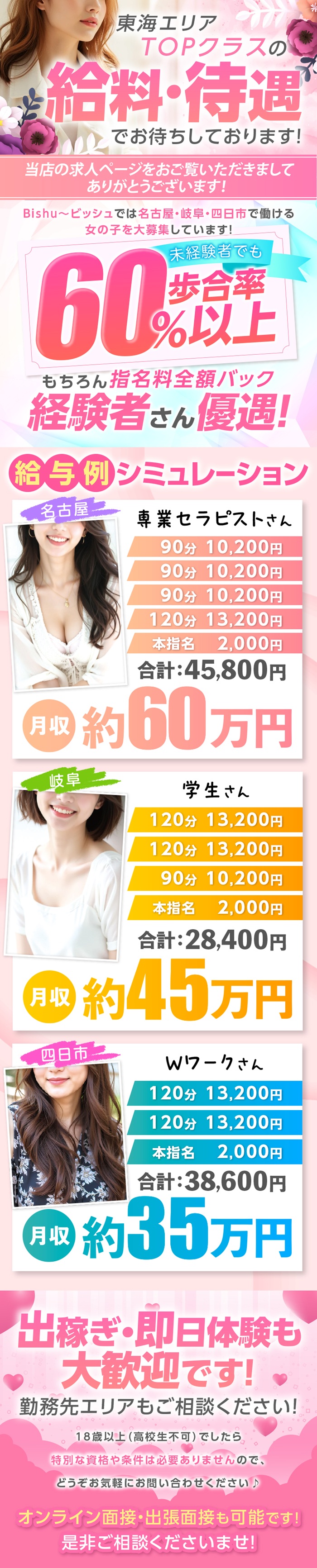岐阜・名古屋・四日市で稼ぎたい女性大募集!
