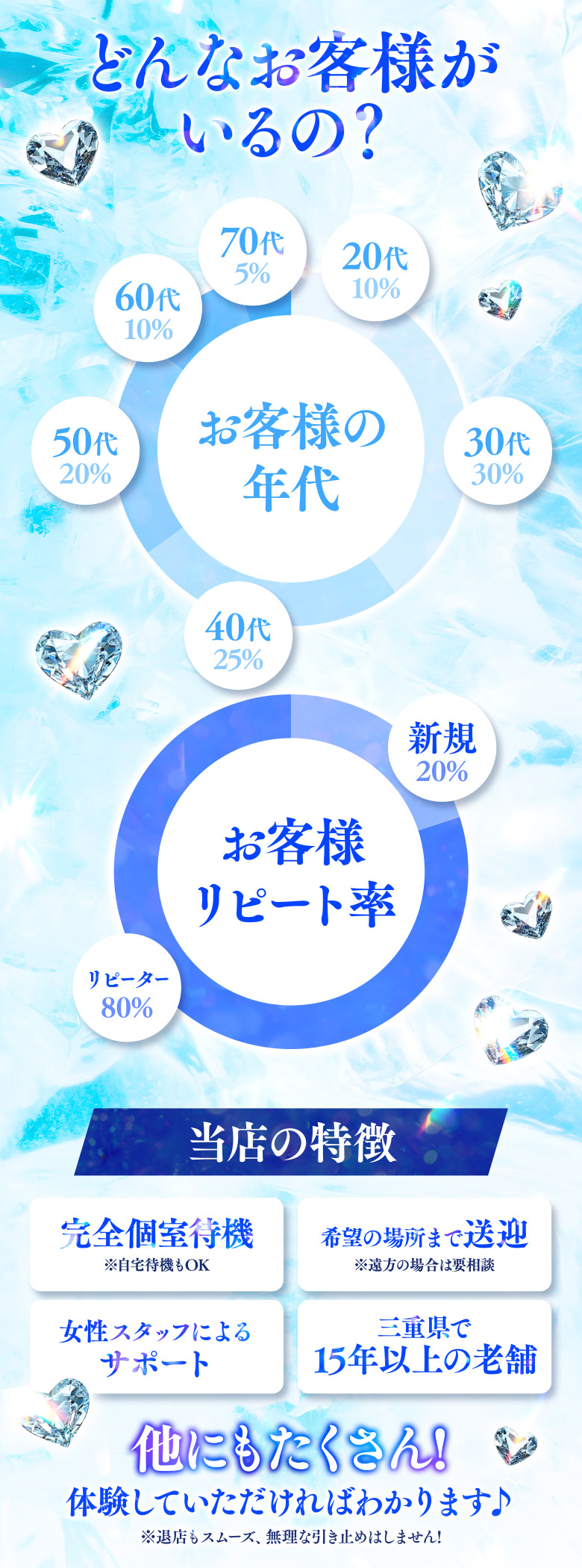 ⭐一度働けば分かる‼️18歳~60代の方を積極採用中❗🟡18歳~60代まで🟡🔶幅広い年齢層を大募集!🔶年齢・容姿気にせず採用率100%!🔶他店で断られた方も積極的に採用!🔶経験・未経験は一切問いません!🔶他店から移籍を考えられている方・県外の女性や出稼ぎでのご応募も大歓迎!※写真付き身分証明書と本籍地記載の住民票の2点が必須になります。※髪型やタトゥーの有無は問いません(応募の秘密は厳守致します)🟡スタッフさんも仲良く頼れる存在です❗(女性スタッフ多数)長くお店に関わっているスタッフさん達ですので、不安な事やプライベートの事でもいつでもお話しくださいね。ベストな形を一緒に考えます。🟡未経験でも安心してデビュー当店では実技講習は一切ございません。自社制作の分かりやすい実技マニュアルがございますので、ご自身でお仕事を覚えて頂けます。もしも不安な事が有ればスタッフさんにいつでも質問して下さいね。🟦他店で断られた方や遠方の方、年齢を気にされている方、お仕事は興味はあるけど・・・不安が有る方など、まずはお問い合わせから始めてみませんか?🔴他店で断られた方や年齢、出戻りなど一切気にせず、まずはお話しましょう。条件に合わなければ気軽にお断り頂いてOKです。🟡朝11時~深夜5時まで🔶お好きな時間で、週1日・月1日からの完全自由出勤♪🔶短期入店・体験入店OK!🔶長期で長く働きたい方も大募集!🔶帰りは自宅まで送迎も可能!🔶当日欠勤 ・無断欠勤などに罰金は一切ありません。🔶1日2~3時間の短時間出勤も可能! 当日急な出勤も大歓迎です
