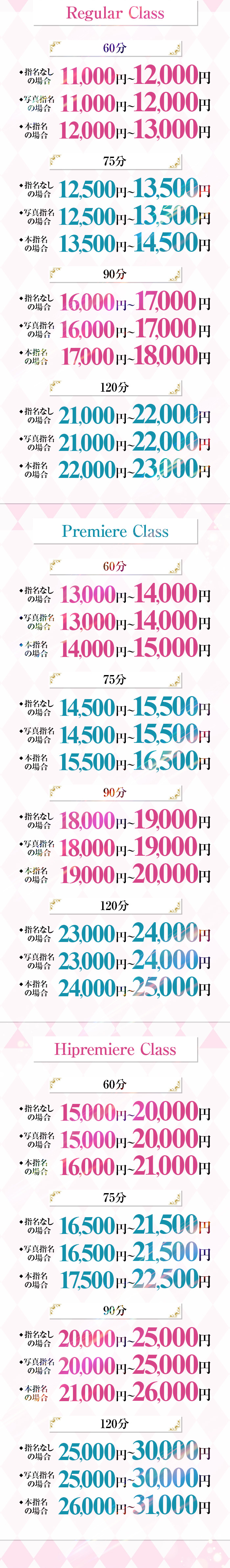 ※出勤状況により金額は変わる場合もございます。詳しくはお店にお問合せください。