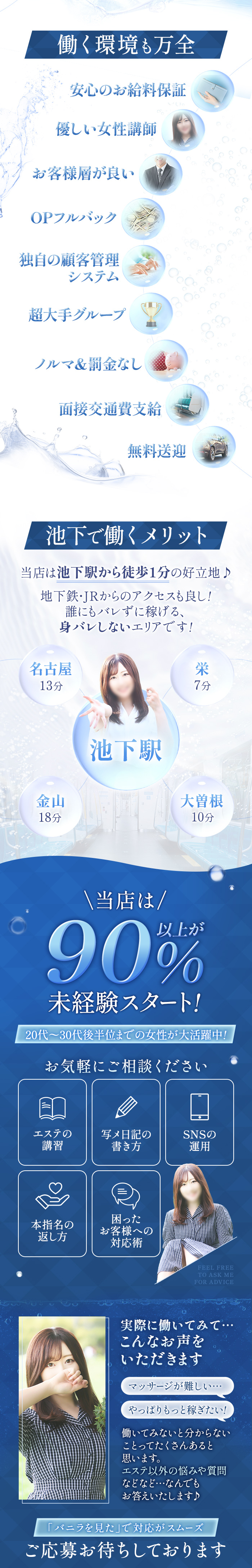 【バニラをご覧の皆様へ!】こんばんは!エステハウス池下スタッフ、横山です求人ページをチェックしてくださって、ありがとうございます(^^)/いきなりですが──ランキング伸びてます!!!というのも、あの“ミスヘブン”にて…✨10名のセラピストが全国日本代表に選出✨【つまり、集客力がヤバい】✓通常営業でもネット予約バンバン✓フリー来店も平日から安定✓推しの子を探す“指名客”も続々これ、たまたまじゃないです(^^♪ちゃんとした仕組みとスタッフ対応、そして女性たちの魅力が世に伝わってる証拠(^^)その流れ、止まりませんッ(/・ω・)/-----【見てくれてる!=選ばれてる!】『名古屋エステネット予約人気ランキング』1位獲得ッ!『注目キャストランキング』1位獲得ッ!これは何を意味するかというと──“ちゃんと見られてる”=“チャンスがある”ということッ!「経験者しか無理そう…」とか、「どうせ可愛い子しか指名されないんでしょ…?」とか、不安に思ってる未経験の方へ伝えたい。当店、未経験スタートのセラピストもめちゃくちゃ活躍してます(/・ω・)/-----【今こそ、女の子が主役の時代】例えば…・今のお店、なんとなく惰性で働いてる・人間関係がしんどい・稼ぎたいけど夜職に抵抗がある・一歩踏み出したいけど怖いそんな貴女様こそ、池下に来てください('ω')業界デビューの不安、ぜんぶ分かってます(@_@)だからこそ、手厚いサポートあります(*^^)v・研修は女性講習員が対応・自由シフト制(週1〜OK)・清潔感あるお部屋&個室待機やってみなきゃ分からないかもだけど、「もっと早く来ればよかった…」って方、ほんと多いです(;・`д・´)-----【採用枠は残り20名】もちろん体験入店からで大丈夫です!面接だけでもOK!特に…・夕方〜ラスト・週末出れる方↑はめちゃくちゃ歓迎中(`・ω・´)【まとめると──】1.今、池下はランキングでも集客でも絶好調2.未経験でもチャンスはあるし、むしろ伸びてる3.年末に向けて“はじめどき”としてベストこのブログが、貴女様の人生を変える“きっかけ”になれたら。エステハウス池下、次の主役は──貴女様です(^^)/【ご応募はこちらをコピペで◎】バニラを見ました!🌸お名前(偽名でもOK!)🌸年齢 歳🌸業界経験の有・無🌸身分証の有無(体験入店には必要です)🌸面接希望日時(例:12月3日15時〜17時の間)🌸ご質問あれば何でも!そのままLINEに送ってください📩ご連絡、お待ちしてます!