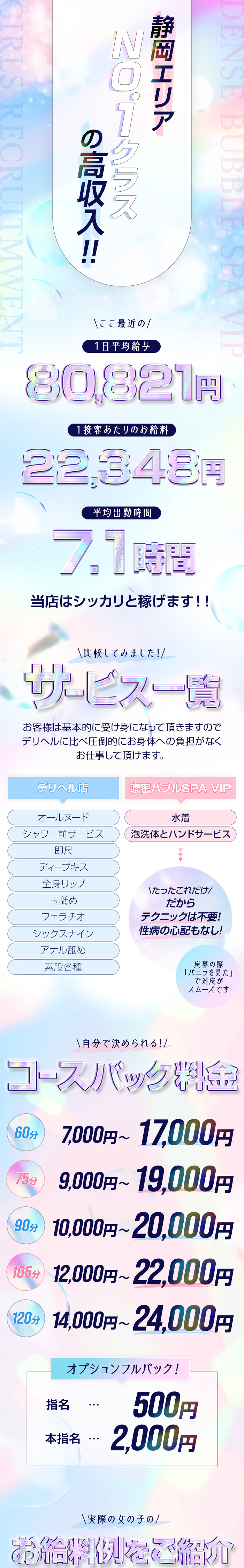 DenseGroup鈴木です!(^^)!ウチのグループではイベントよくやるのですが基本的にはお店で負担するので女の子のお給料が減ったりとかは無いのでご安心ください。※逆に増えます(笑)(沼津)2/12 最高日給&時給&単価最高日給 73,500円最高時給 11,181円最高単価 38,500円当店で、業界卒業を目標にお仕事しませんか??卒業までのプロデュースは是非当店にお任せくださいね☆求人のお問い合わせは24Hいつでもどうぞ♪【洗体エステ】濃密バブルSPAVIP