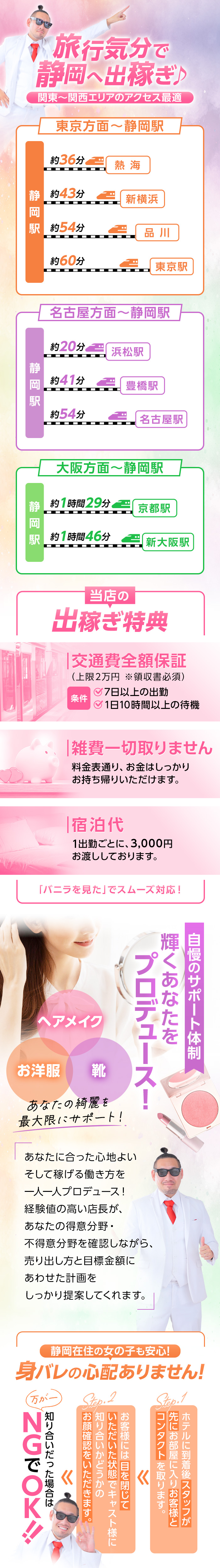サポート力に自信があります!自由に選べる待機場所も魅力!サポート力に自信があるという同店。“AD店長”さんによると、1人ひとりの目標金額に合わせてアドバイスを行っているのだとか。「女の子のことを第一に考えています」と話してくれました。また待機場所を自由に選べるとのこと。事務所はもちろん、自宅や近くの喫茶店などでも過ごすことができるそうです。