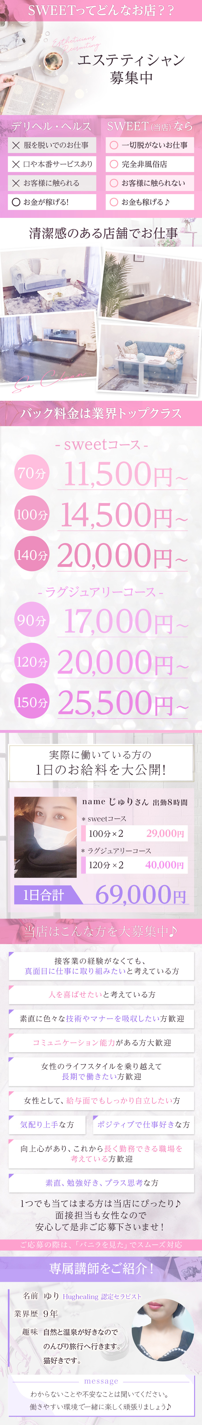 【セラピスト緊急大募集!!!】 電話は1日50件以上!!ご予約取り切れません(>_<) ■日給60,000円~ ※出勤時間により異なります。 ■待機保証あり ★★コチラも急募★★ 内勤STAFF/講師補助 Wワークok!! ※特に夜間スタッフ急募!!※ ■22:00~4:00間 ■シフト制 圧倒的な集客率SWEET! 短期OK! 遠方からの出稼ぎOK! お友達同士OK! 沼津店、三島店、富士店、静岡店・浜松店との掛け持ちもOK! (宿泊用の部屋あり) 未経験の方でも安心の、資格保持者女性講師の講習あり! そして、不安な方は新人割をつけ、常連さんからお仕事開始が出来るため何も心配いりません! アリバイ対策出来ます。 ご相談ください! 離職率の低い働きやすい環境でたくさん稼ぎましょう('◇')ゞ (よく質問がありますが、容姿だけでの採用はありません。35歳くらいまでの、常識があり、やる気のある方を採用させていただいております。) 沼津店、三島店、富士店 どちらの店舗もメンズエステの営業許可をもらえている物件なので、大家さんなどとのトラブルも一切ありませんよ! 【急募】沼津店、三島店、富士店、浜松店、静岡店ともに募集中!!