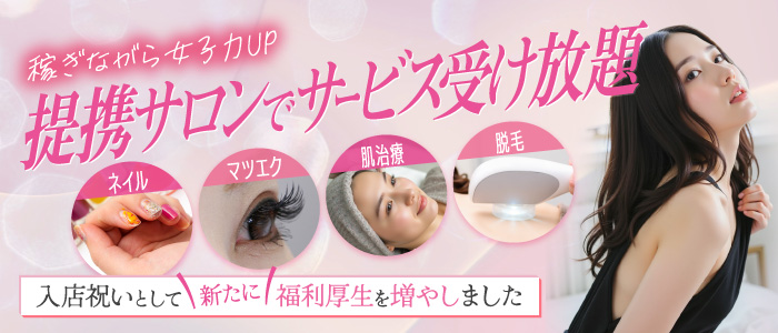 完全日払い制! 雑費なし! 月給200万以上目指せます! ☆入店祝い☆ ・ネイル ・マツエク ・肌治療 ・脱毛 ・提携店にてやり放題サービス!!